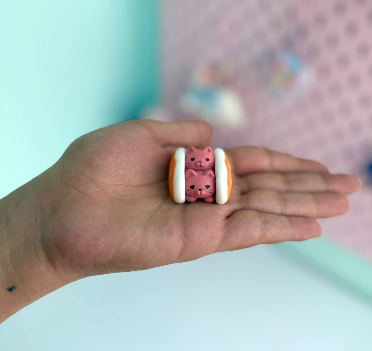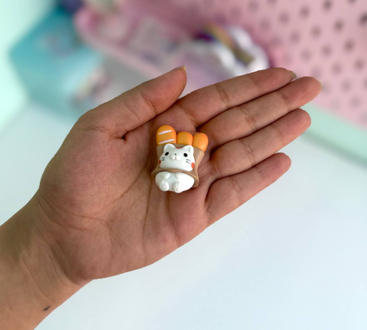 دکوری کوچک گربه و نان باگت کیوت عدد