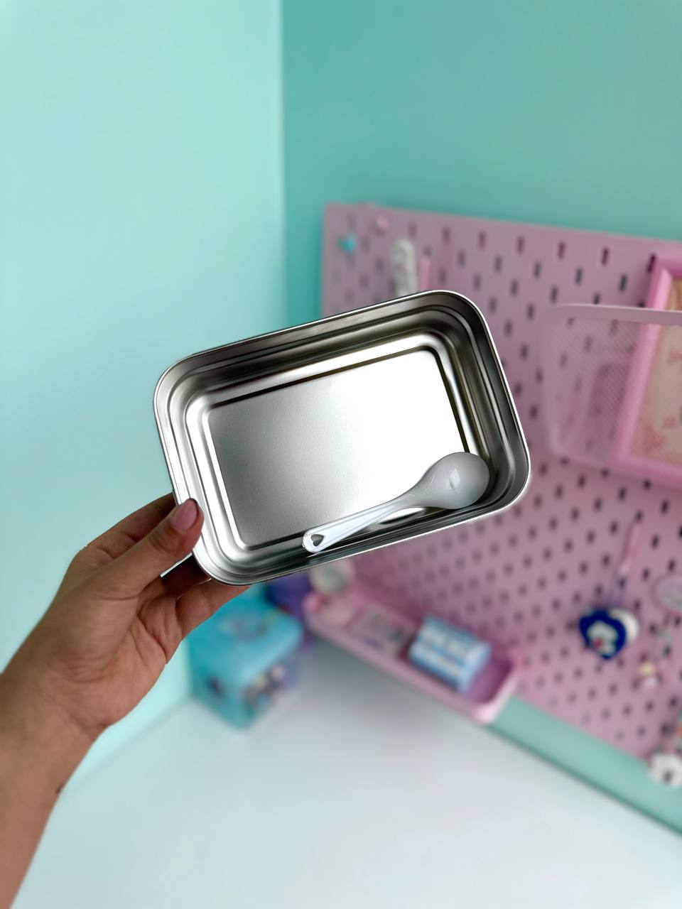 ظرف غذای فلزی توت فرنگی صورتی