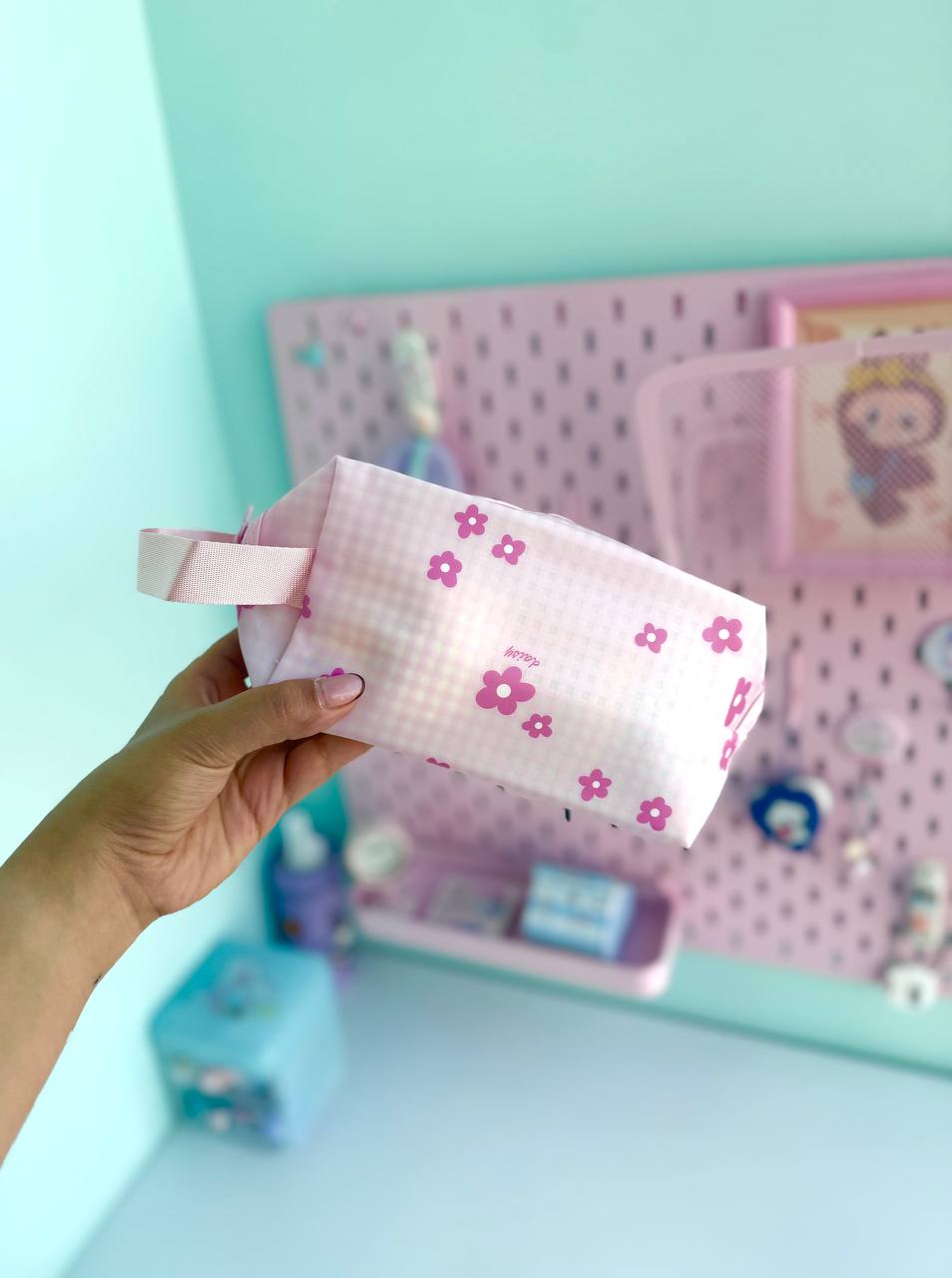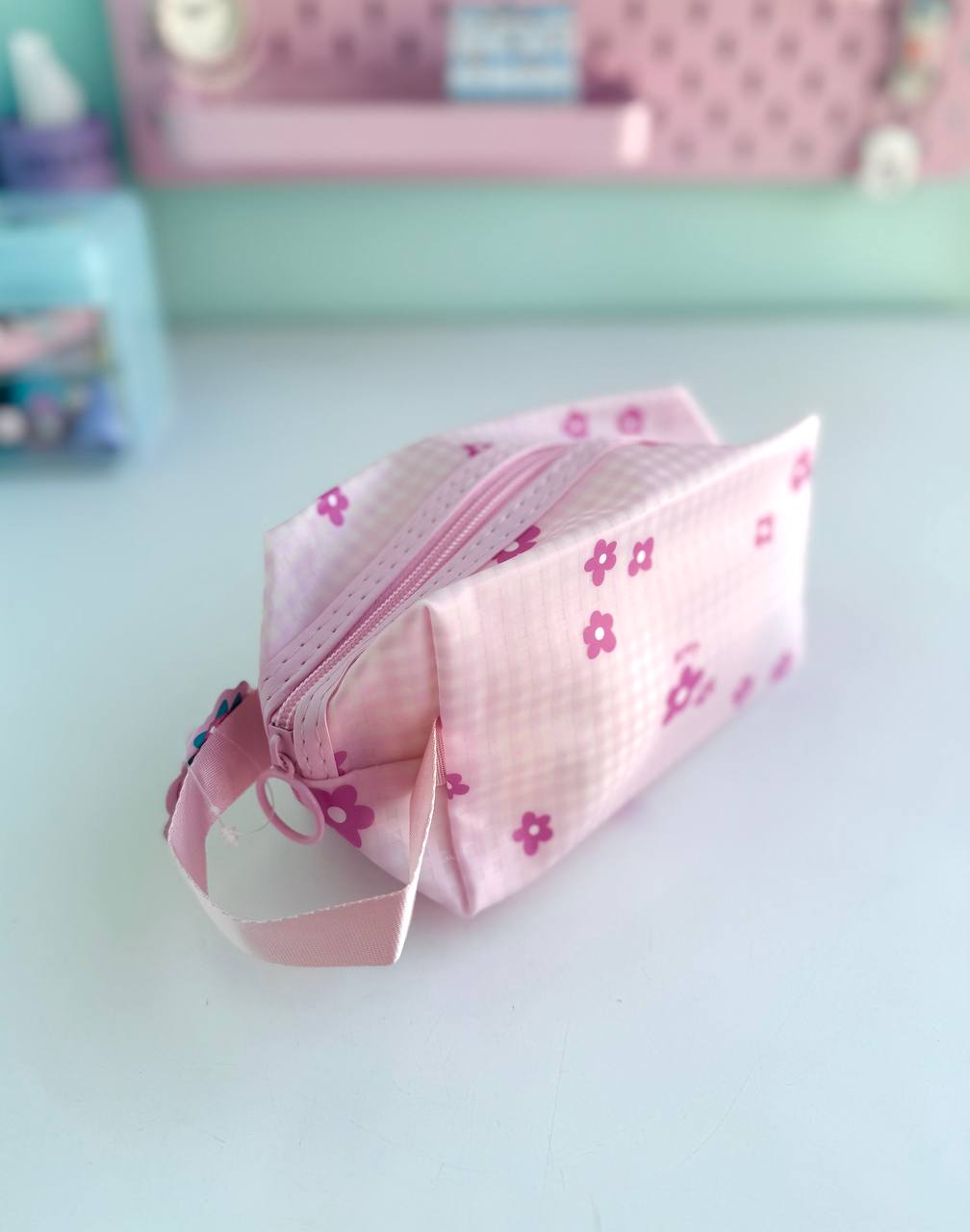 کیف لوازم آرایش شکوفه صورتی